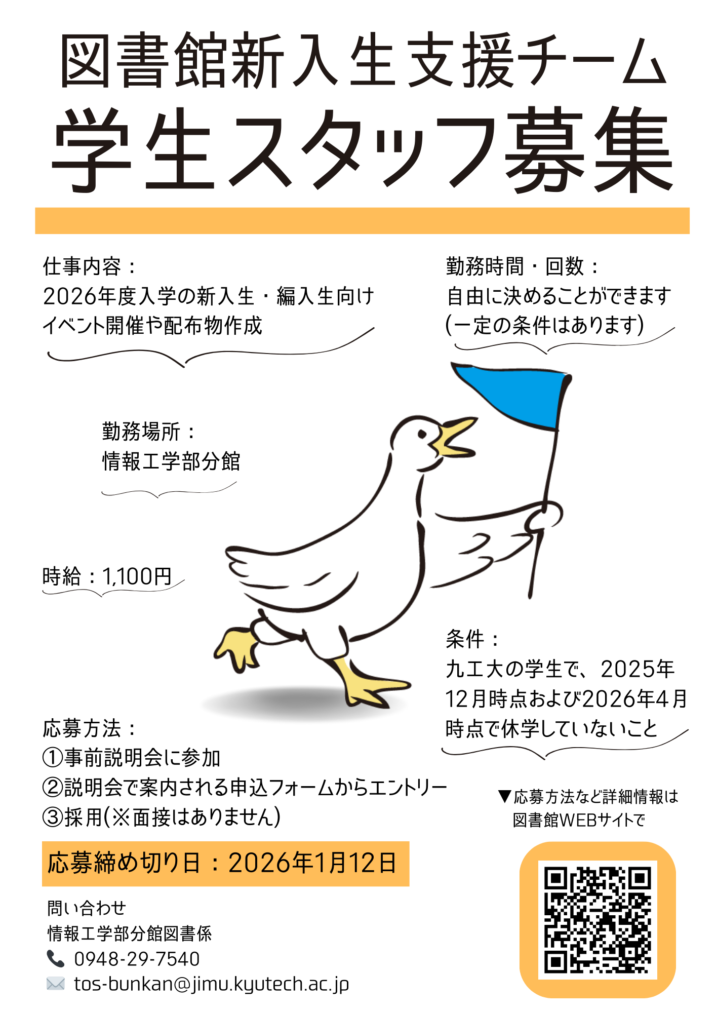 【飯塚分館】学生スタッフ募集 [図書館新入生支援チーム]