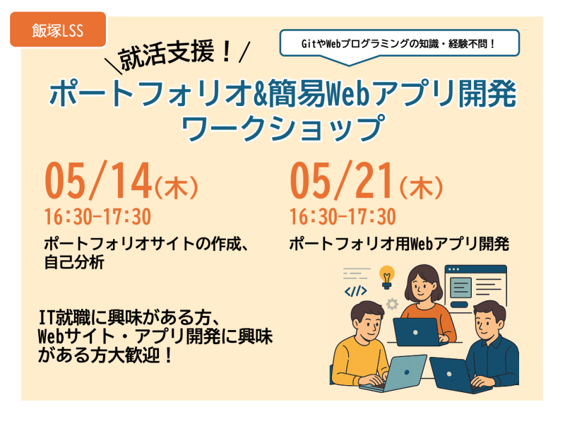 【飯塚分館】LSSイベント「就活支援!ポートフォリオ&簡易Webアプリ開発ワークショップ」参加者募集